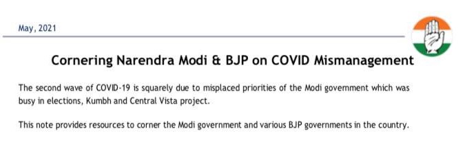The issue was flagged initially by BJP spokesperson Sambit Patra who on Tuesday 18 May tweeted: “Friends look at the Congress ToolKit in extending help to the needy during the Pandemic! More of a PR exercise with the help of “Friendly Journalists” & “Influencers” than a soulful endeavour. Read for yourselves the agenda of the Congress.