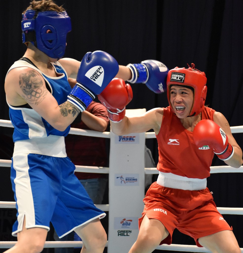 In the 51kg high-voltage summit clash, Mary Kom and her Kazakh opponent started the bout with aggressive mindset and soon exchanged powerful blows attempting to unsettle each other.
