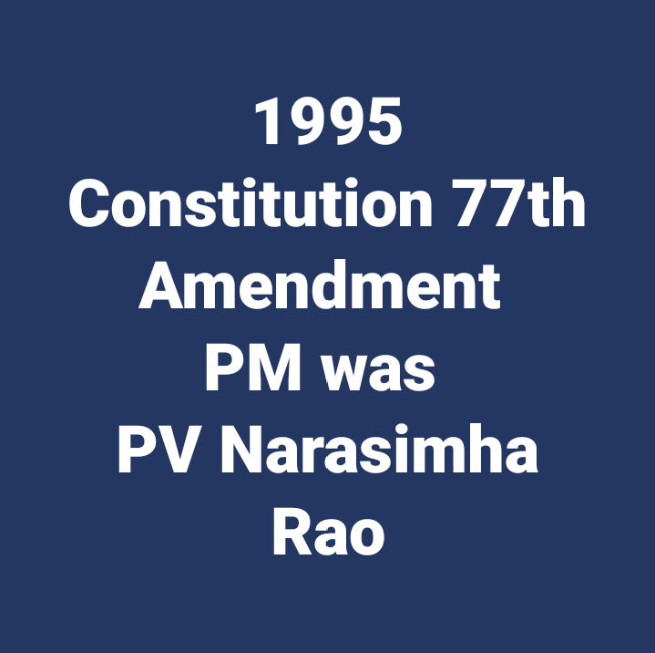 The 77th Constitutional Amendment was made to amend Article 16. In article 16 of the Constitution, after clause (4), the following clause has been inserted: