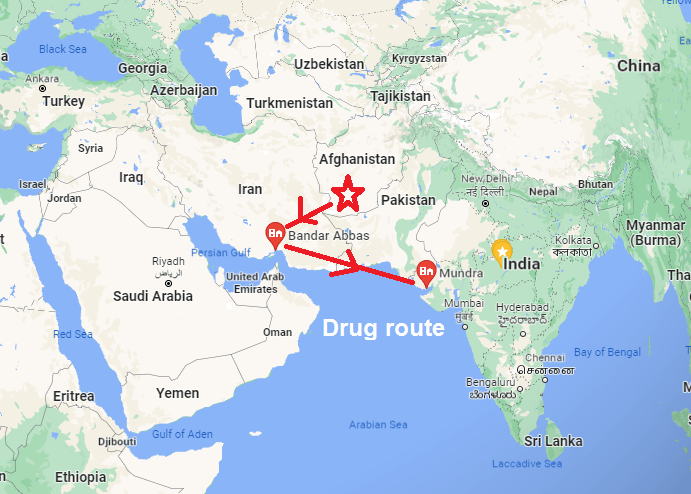 Let us, for example, visit and traverse the route of the recent Rupees 21,000/ crores seizure effected at Mundra Port, by Directorate of Revenue Intelligence (DRI), which also happens to be the world’s largest seizure of drugs. Information presently disclosed in public domain indicates that the contraband emanated from Kandahar in Afghanistan from a company named Hassan Hussain Limited. It made its initial foray into the Iranian port of Bandar Abbas, by the land route. From there the