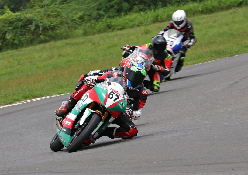 Rajini Krishnan, 41, battled with Race-1 winner Hyderabad’s Rahil Shetty (Gusto Racing) and Deepak Ravikumar (TVS Racing) before winning the thrilling battle in the premier Prostock 301-400cc category with less than a second covering the trio.