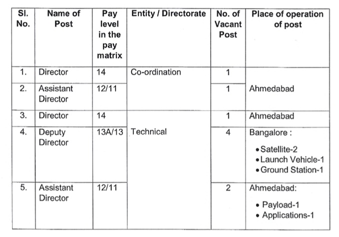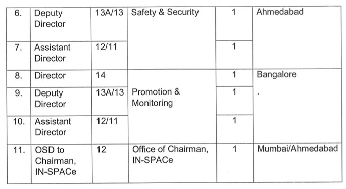 New Delhi: Department of Space proposes to fill up posts at the Director, Deputy Director and Assistant Director level in the Directorates of the Indian National Space Promotion and Authorisation Centre (IN-SPACe) on Deputation basis from the eligible S&T employees working in DOS/ ISRO Centres/Units.