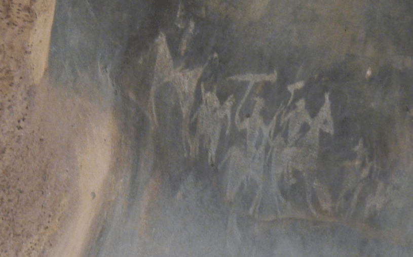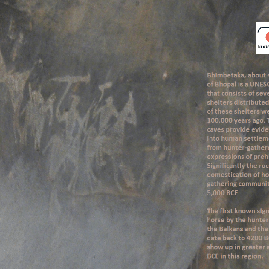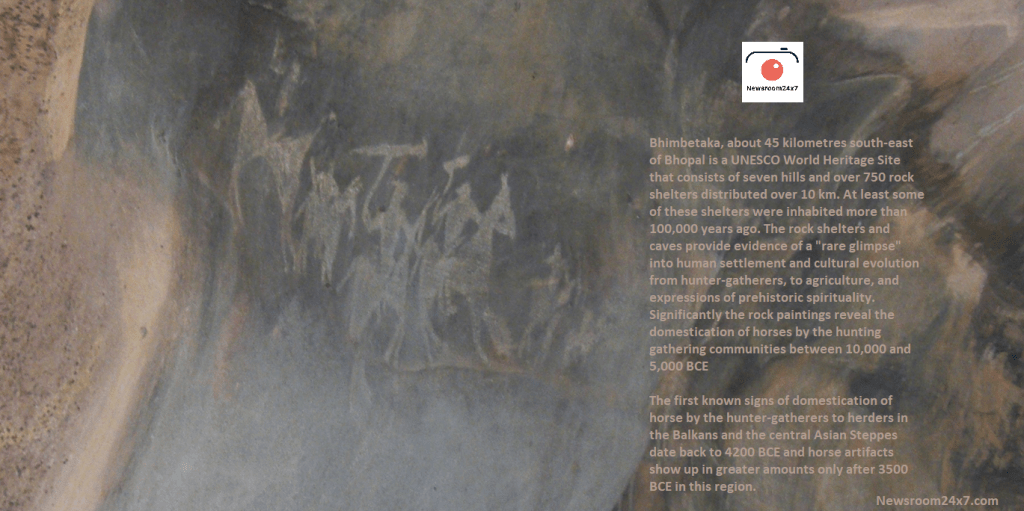 Significantly the rock paintings reveal the domestication of horses by the hunting gathering communities between 10,000 and 5,000 BCE in this part of the world (central India).