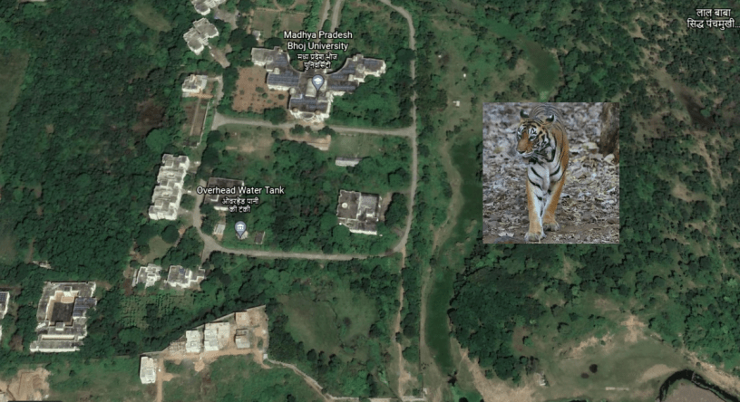 Bhopal: Panic gripped the officers and employees of Bhoj Open University in Bhopal the capital of the central Indian State of madhya Padesh on Monday 7th February 2022 as a tiger was found roaming in the campus. The tiger was spotted through the CCTV shortly afetr 1.00 am.
