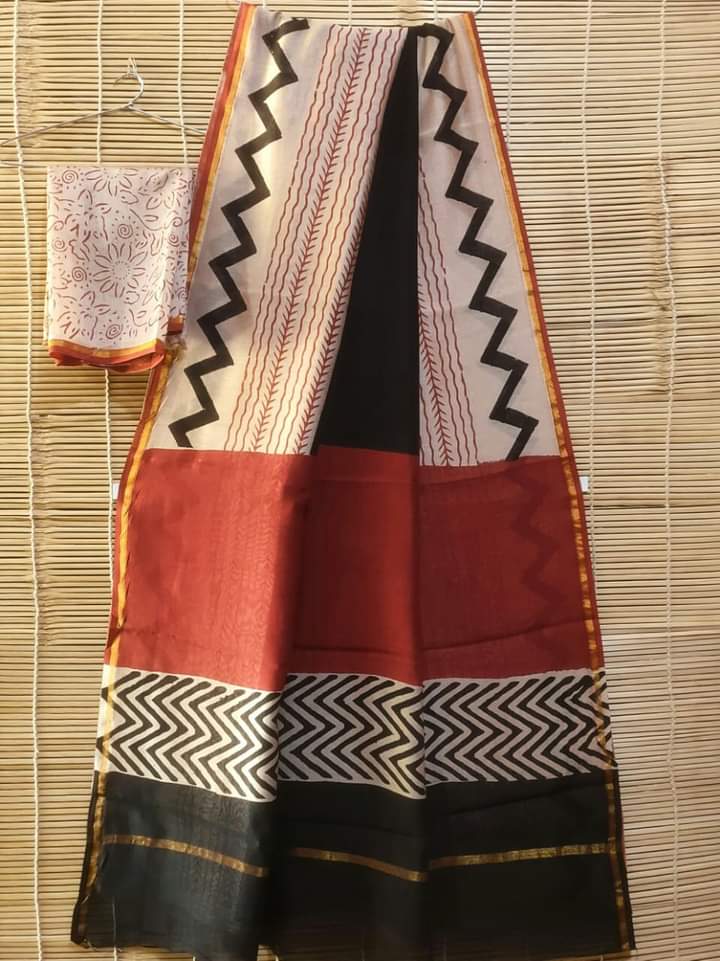 Kota sarees get their name from Kota, a district in Rajasthan, this type of sari uses a fine woven fabric containing a checked pattern in the weave itself. These saris are very delicate, lightweight, and porous, which helps with surface ornamentation techniques like tie-dye, hand-block printing, embroidery, and appliqué work.
