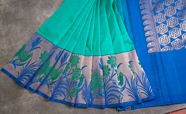 The Kanchipuram sarees of Tamilnadu are typically made by the gold-dipped silver thread that is woven into best quality silk. The silk base of these saris is thicker than any other silk sari, which makes it quite expensive. The most common motifs found in Kanchipuram saris are Peacock and Parrot.