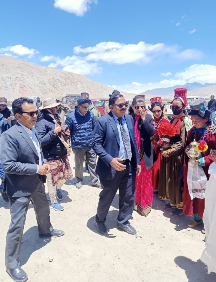 Chushul, Ladakh: Chairman NABARD, Dr GR Chintala , laid the foundation stone of the Workstation and Training Centre of Looms of Ladakh here on Monday 30 May 2022.