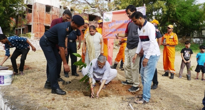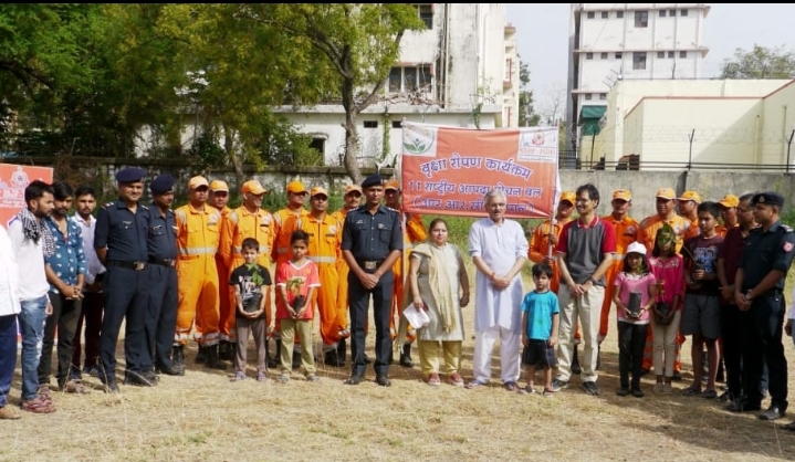 The faculty members, officers, employees, children, and members of National Disaster Response Force (NDRF) participated in the plantation of fruit trees and took a pledge to protect them.