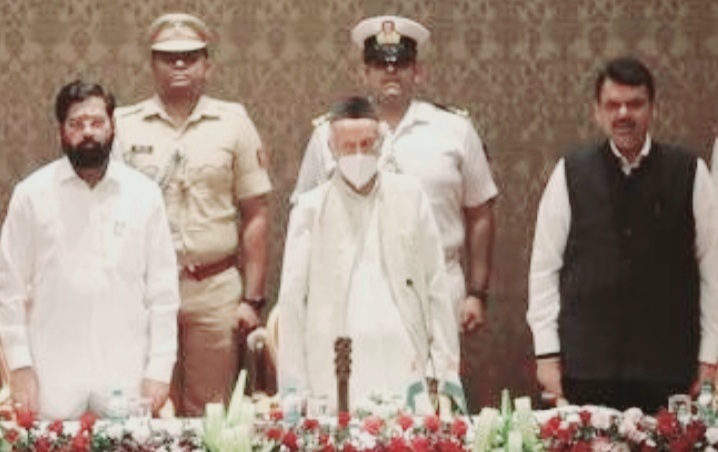 MUMBAI: Maharashtra Governor Bhagat Singh Koshyari administered the oath of office and secrecy to Eknath Shinde as the new Chief Minister of Maharashtra and Devendra Fadnavis as the Deputy Chief Minister of Maharashtra at a brief oath taking ceremony held at Raj Bhavan, Mumbai on Thursday 30 June 2022.