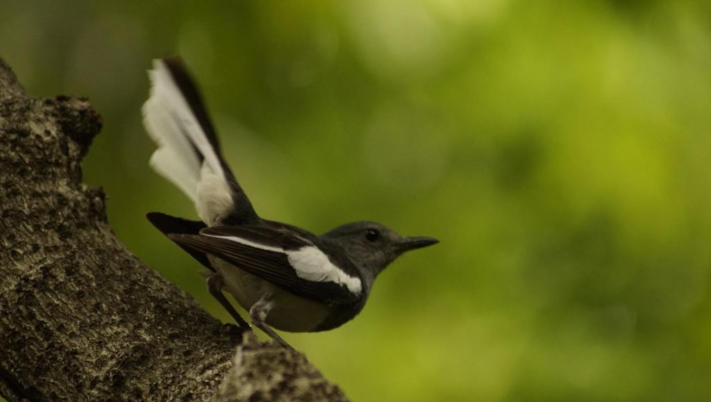 “Magpie Robin on her black and white wings,