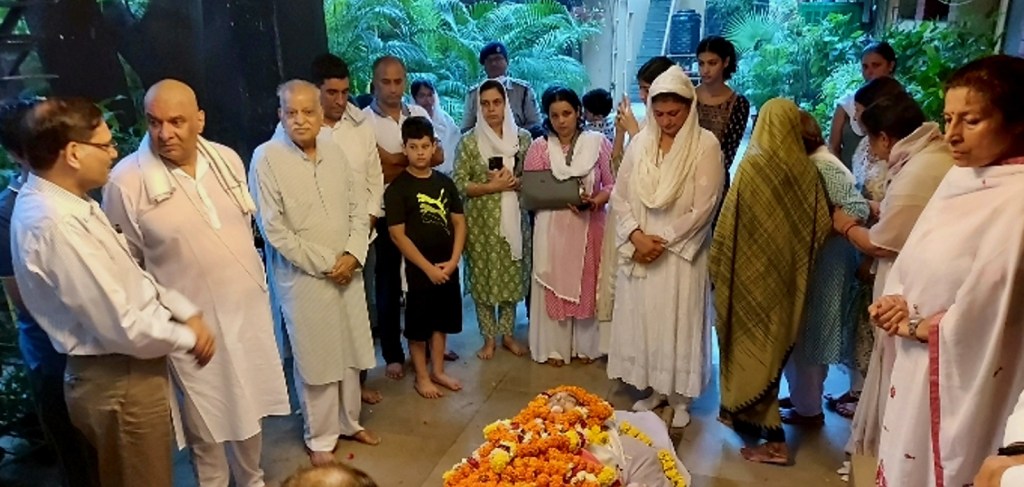 The pyre was lit by Mr Sharma’s son Rajesh Sharma, IPS (retd).