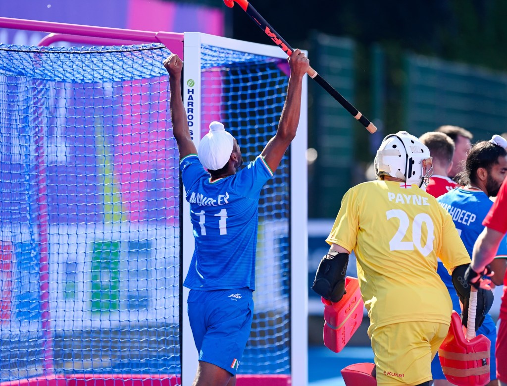 Gaining confidence from the late goal scored in third quarter, England started pressing deep in the final 15 minutes to try and further reduce the deficit. But a costly error in defence from England earned India another Penalty Corner, and Harmanpreet Singh converted it with ease to make it to 4-1.