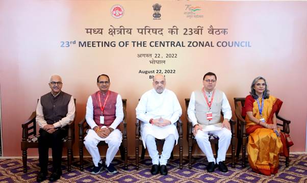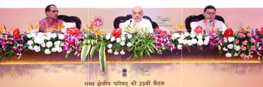 Bhopal: Union Home and Cooperation Minister Amit Shah chaired the 23rd meeting of Central Zonal Council in Bhopal today. Chief Minister of Madhya Pradesh Shivraj Singh Chouhan, Chief Minister of Uttarakhand Pushkar Singh Dhami attended the meeting, while Chief Minister of Uttar Pradesh Yogi Adityanath and Chief Minister of Chhattisgarh Bhupesh Baghel attended the meeting through virtual medium.