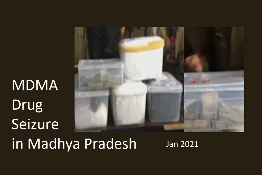 Ecstasy or MDMA worth 70 crores was seized at Indore in January 2021. The drugs were manufactured in Telangana and was brought to Indore for onward shipment to South Africa, when Police intercepted the consignment.