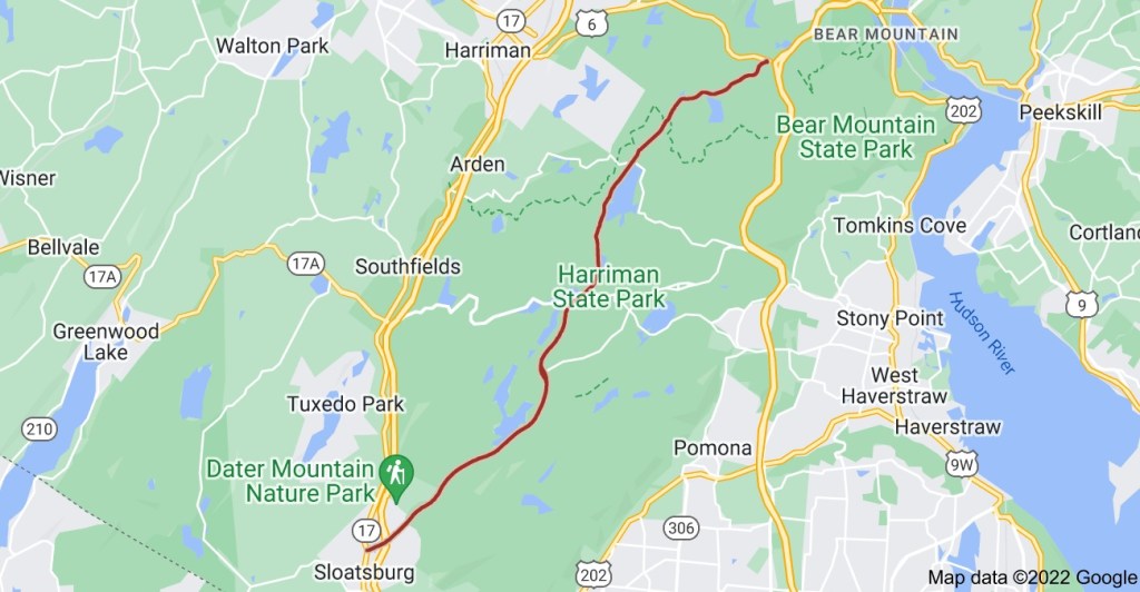 It extends for just under 18 miles (29 km) on a northeast–southwest alignment, from the village of Sloatsburg to the town of Stony Point. Most of the highway is located in either Harriman or Bear Mountain state parks, the western terminus being Sloatsburg.