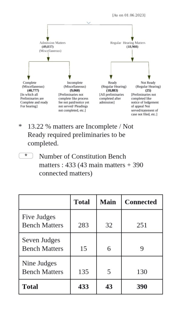 New Delhi: Out of 5 crore cases, 4.3 crore, i.e more than 85% cases, are pending in district courts across India as of December 2022. Government itself is the biggest litigant and accounts for 50% of the pending cases.