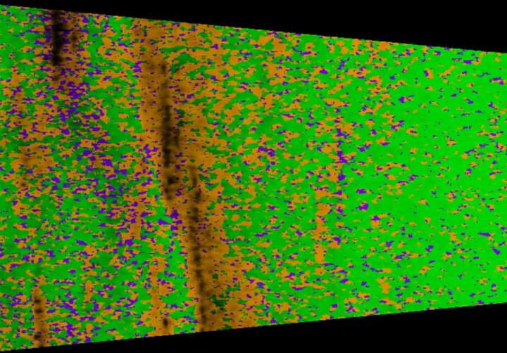 We are proceeding with well designed tests, one after another, to bring out the best from our SAR and it’s signal processor. Presently we tested polarimetric performance at high incidence angles of 82+ degrees from an altitude of 50 metres. Initial level of performance is very satisfying. For uninitiated, the vertical structures like tree stumps, vertical walls are identified in orange colour; flat surfaces like rooftops, sloping roofs, plain grounds with indigo colour; and vagetations, tree canopies, monsoon growth of wilderness as green colour. Image size is approximately 200 m along flight and 500 m across flight direction.