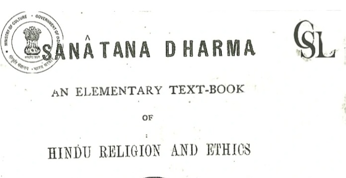 College, Benaras, through the book titled “SANATANA DHARMA – An elementary text-book of HINDU RELIGION AND ETHICS, published in 1916, had laid down the following principles on which religious and moral teaching was to be given in all institutions under its control.