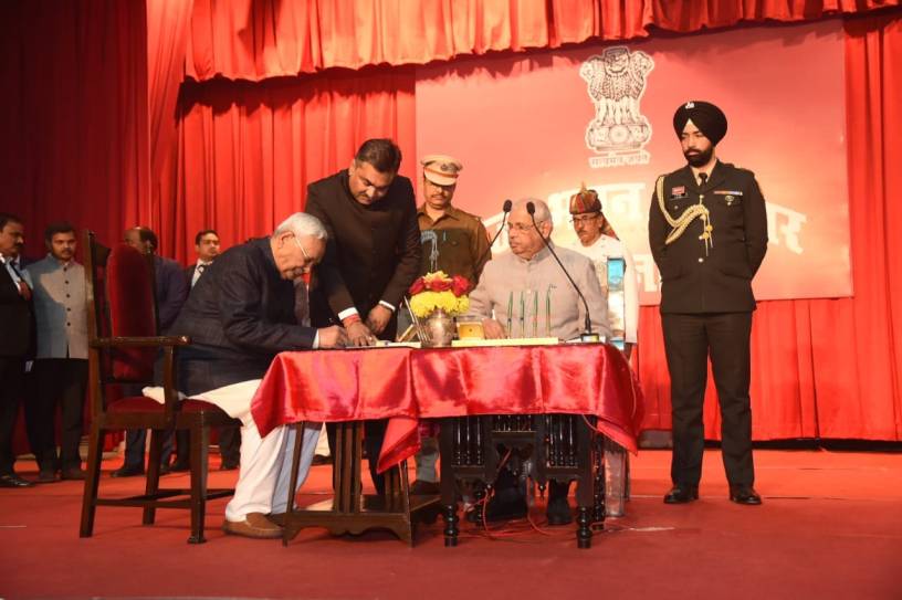 The oath of office was administered by Bihar Governor Rajendra Vishwanath Arlekar at Rajbhawan.