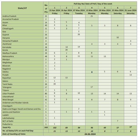 Keeping in view the interests of the students and also the fact that Polling Stations are mostly located in school buildings and teachers are engaged as polling personnel, the Commission has consciously factored-in the examination schedules of Central Board of Secondary Education and Indian Certificate of Secondary Education in the process of finalizing the poll dates. In addition to this, other relevant factors like various holidays and festivals falling in the months of March, April and May, harvest season in certain parts of the country and the inputs obtained from the Indian Meteorological Department on weather conditions have also been taken into consideration. Thus, while deciding on the number of poll days for each State/ UT and the composition of the PCs that go to polls on a particular poll day, the Commission has, to the extent possible, taken all relevant aspects and information related thereto into consideration.