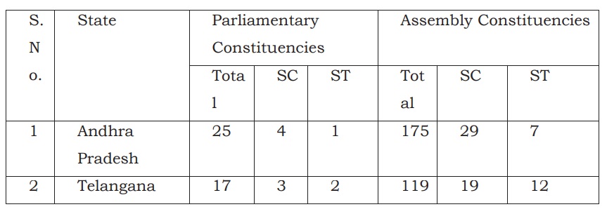 (ii) As per “Andhra Pradesh Reorganisation Act-2014(No.6 of 2014)” dated 1st March, 2014 & “Andhra Pradesh Reorganisation (Removal of Difficulties) Order-2015” dated 23rd April, 2015 and subsequently Commission’s Notification No.282/AP/2018(DEL) dated 22 September, 2018, the total number of Parliamentary and Assembly Constituencies assigned in respect