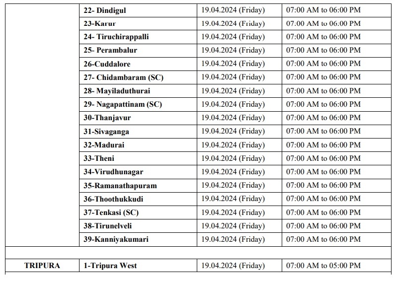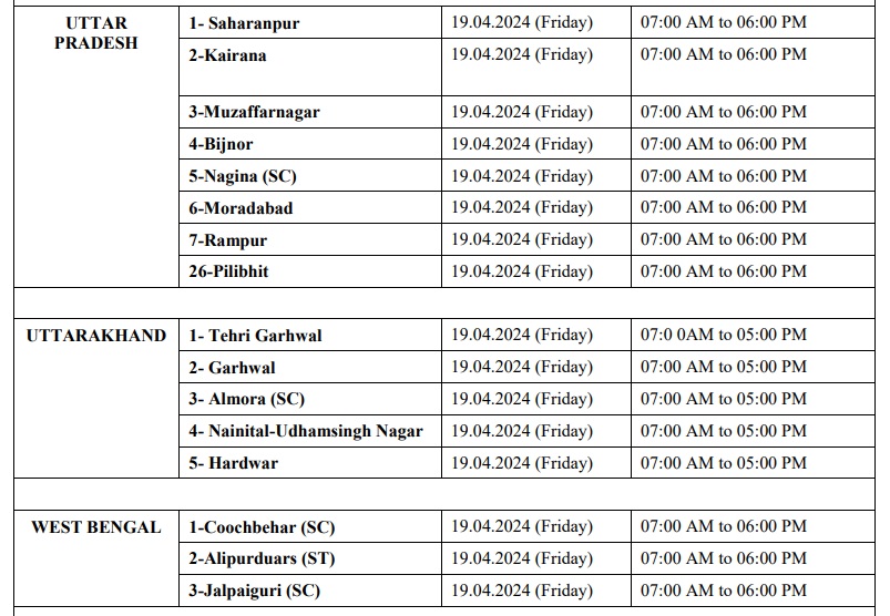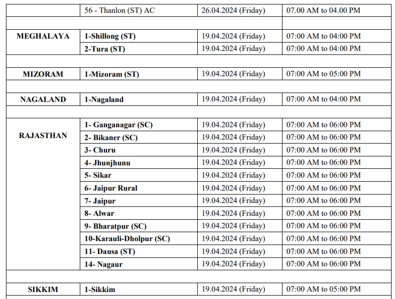 (b) Saturday 30 March, 2024, as the date for scrutiny of nominations for Bihar and Thursday 28 March, 2024, for scrutiny of nominations for Arunachal Pradesh, Assam, Chhattisgarh, Madhya Pradesh, Maharashtra, Manipur, Meghalaya, Mizoram, Nagaland, Rajasthan, Sikkim, Tamil Nadu, Tripura, Uttar Pradesh, Uttarakhand, West Bengal, Andaman and Nicobar Islands, Jammu and Kashmir, Lakshadweep and Puducherry;
