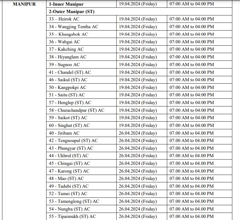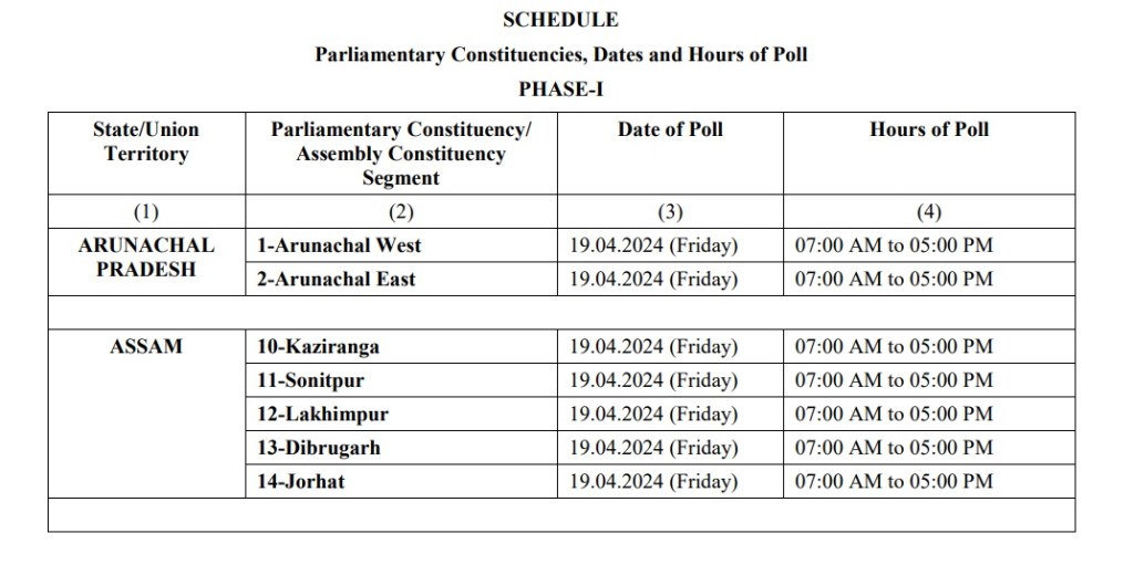 Wednesday 27 March, 2024, as the last date for making nomination for Arunachal Pradesh,