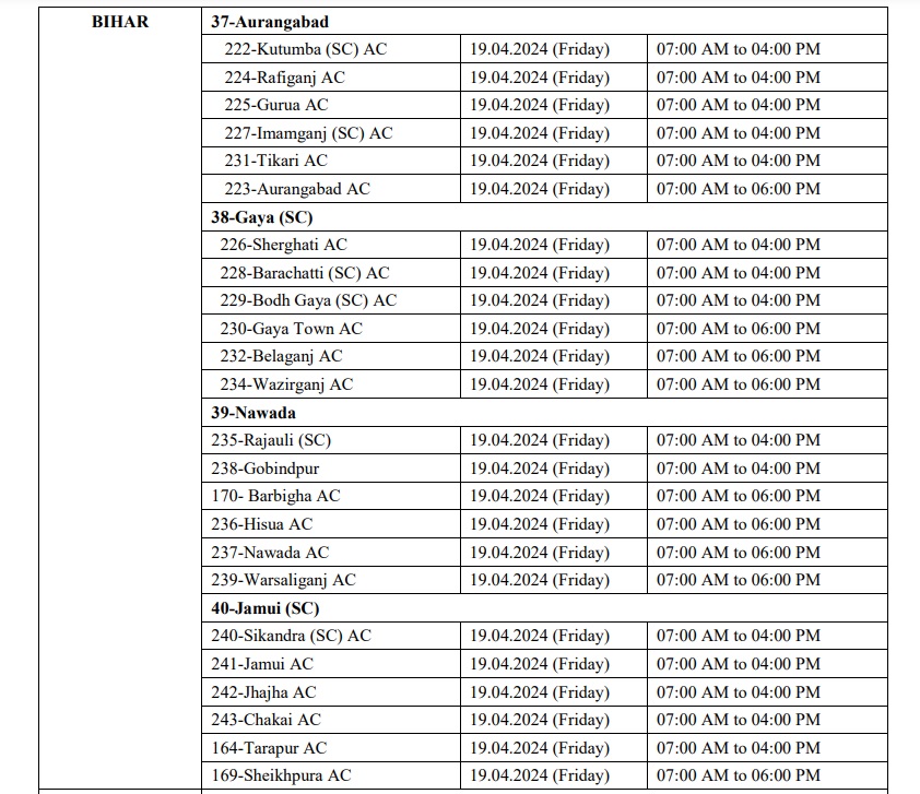(c) Tuesday 02 April, 2024, as the last date for withdrawal of candidatures for Bihar and Saturday 30 March, 2024, as the last date for withdrawal of candidatures for Arunachal Pradesh,