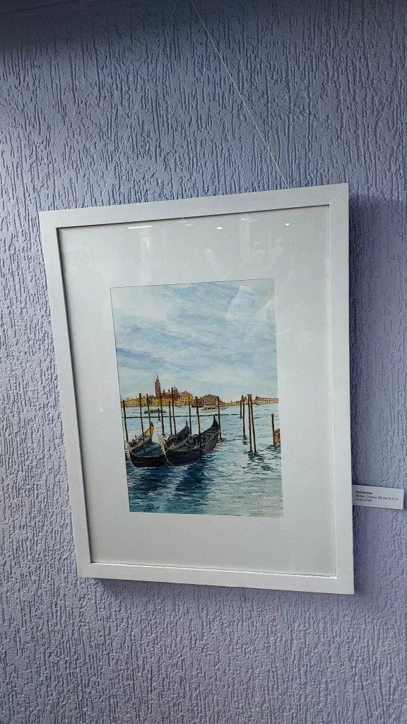 Gondolas floating gently in Venice, captured in soft watercolour hues. With delicate brushstrokes and atmospheric light, Alok Srivastava evokes the timeless romance and quiet charm of the floating city‘s stillness and renewal.