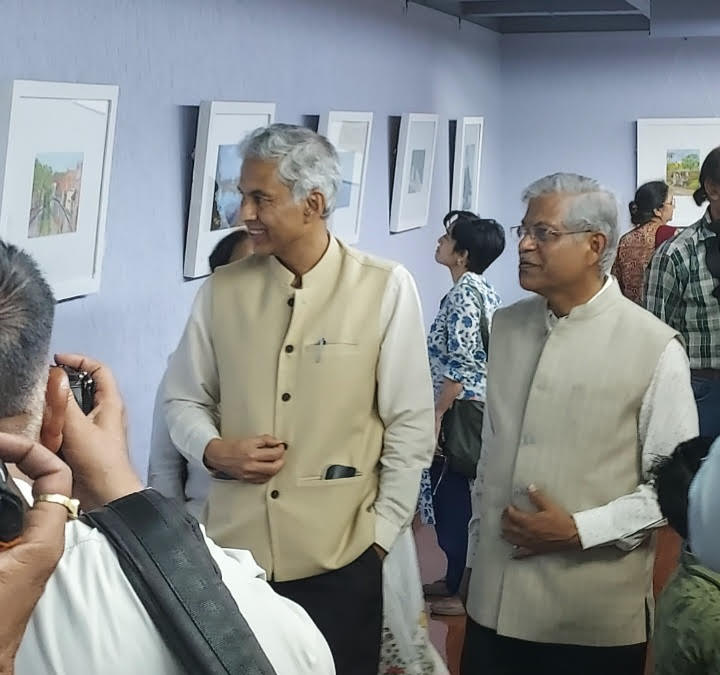 In a soulful confluence of bureaucracy and brushwork, Madhya Pradesh Chief Secretary Anurag Jain on Tuesday, 8 April 2025 inaugurated “Sanskriti Ki Sarjna”, a solo painting exhibition by former IAS officer Alok Srivastava, at the Rangdarshini Gallery of Bharat Bhavan.