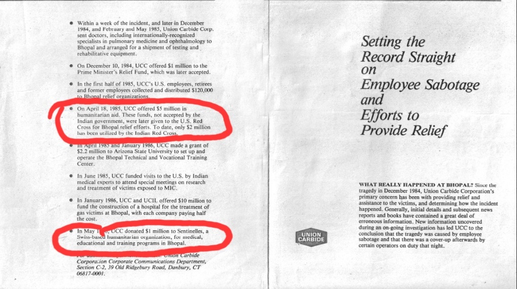 During a meeting at the Sentinelles headquarters at Lousanne, a few days later, Lalit was offered $2 million to organise a relief initiative for the Bhopal gas victims on immediate basis. On being asked about the source of these funds, Edmond Kaiser had said: “we have donors worldwide who do not want publicity”. He had even tried to convince Lalit to drop the whole idea of writing a book on the gas disaster.