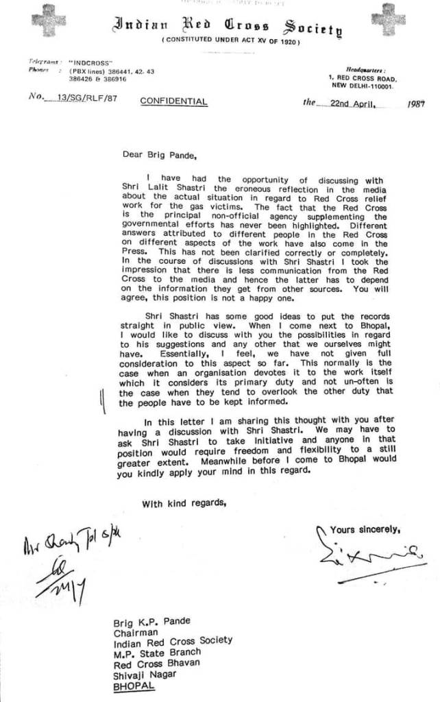 When the CBS team had finished interviewing the Red Cross bosses, including the State Governor and Chairman Madhya Pradesh unit of the Indian Red Cross, the doctors at various medical facilities and also the gas victims, Lalit went to the CBS crew leader and introducing himself as the Public Relations Officer with Indian Red Cross Medical Relief Gas Victims’ Project sought an appointment with him later that evening. His response was a “big No” and Lalit was told point-blank that they have already interviewed “those who matter and they don’t talk to PROs”. Lalit was undeterred and chose to convey to the CBS guy that he was no less important for a television crew that was on ground zero to uncover the truth. Straightaway, Lalit told him that he had authored a book on the gas disaster that had been released in 1986 by the then President of India Giani Zail Singh at Rashtrapati Bhawan. This was the turning point and the meeting between the CBS crew leader and Lalit did take place that night. It began at Jehan Numa Palace Hotel shortly after 9 pm and went on till the wee hours of the next morning. What followed, with regard to the Red Cross Medical Relief Gas Victims’ Project, is now history. Of course, the Indian Red Cross received the remaining installments of the $5 million from the American Red Cross – thanks to the CBS 60 minute show. While this show underscored the “good work” done by the Indian Red Cross, the CBS ended up criticising the work that had been done by the Madhya Pradesh Government. A message in this regard, from the Indian Embassy in Washington DC that had monitored the CBS programme, immediately reached the PMO, which in turn got in touch with the Indian Red Cross headquarters in New Delhi. The Secretary General Indian Red Cross Ajit Bhowmick had responded to this, by telling the PMO: “Our man on the spot was working with full commitment, what was the entire State Public Relations Department doing when the CBS team was in Bhopal”. This was told to Lalit over telephone by Mr Bhowmick himself.